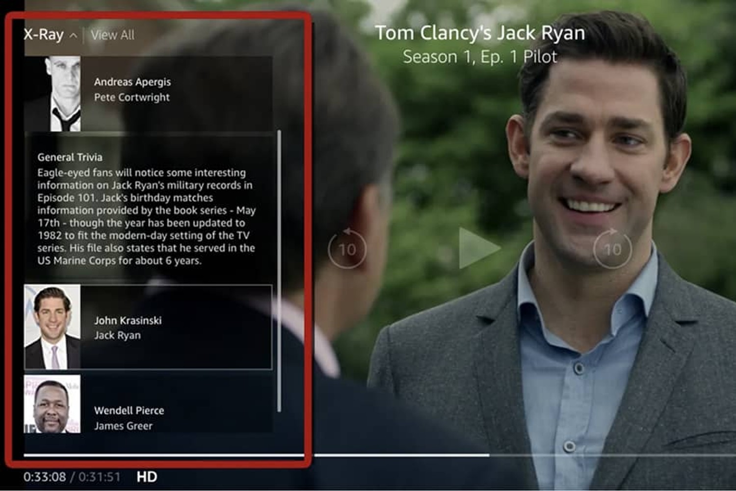 Amazon Prime has pioneered this route. They tested X-ray functionality on Kindle books (sending users more information about the books while they were reading) and decided to examine films and TV series more closely.